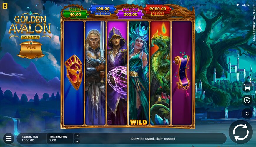 The Golden Avalon Hold and Win slot also includes the Merlin’s Staff feature, which is active during the Golden Respin round and grants random multipliers to Coins. Additionally, during the bonus round, you have the chance to win one of four fixed jackpots.